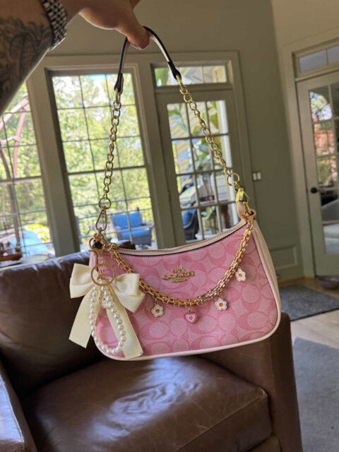 Sevimli charmları ve canlı pembe rengiyle kombininizi anında canlandırın.